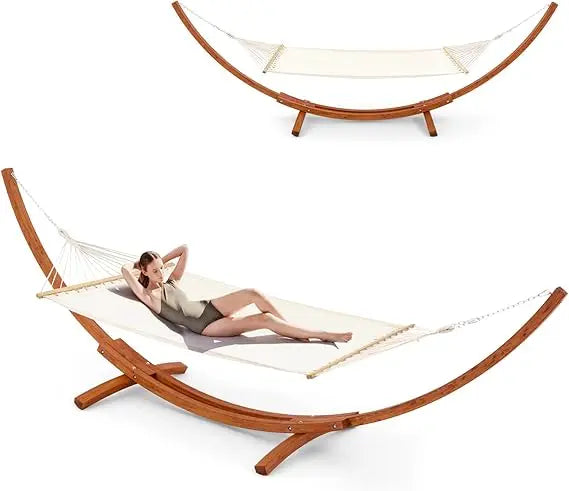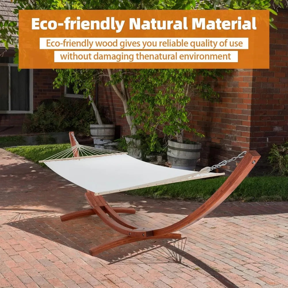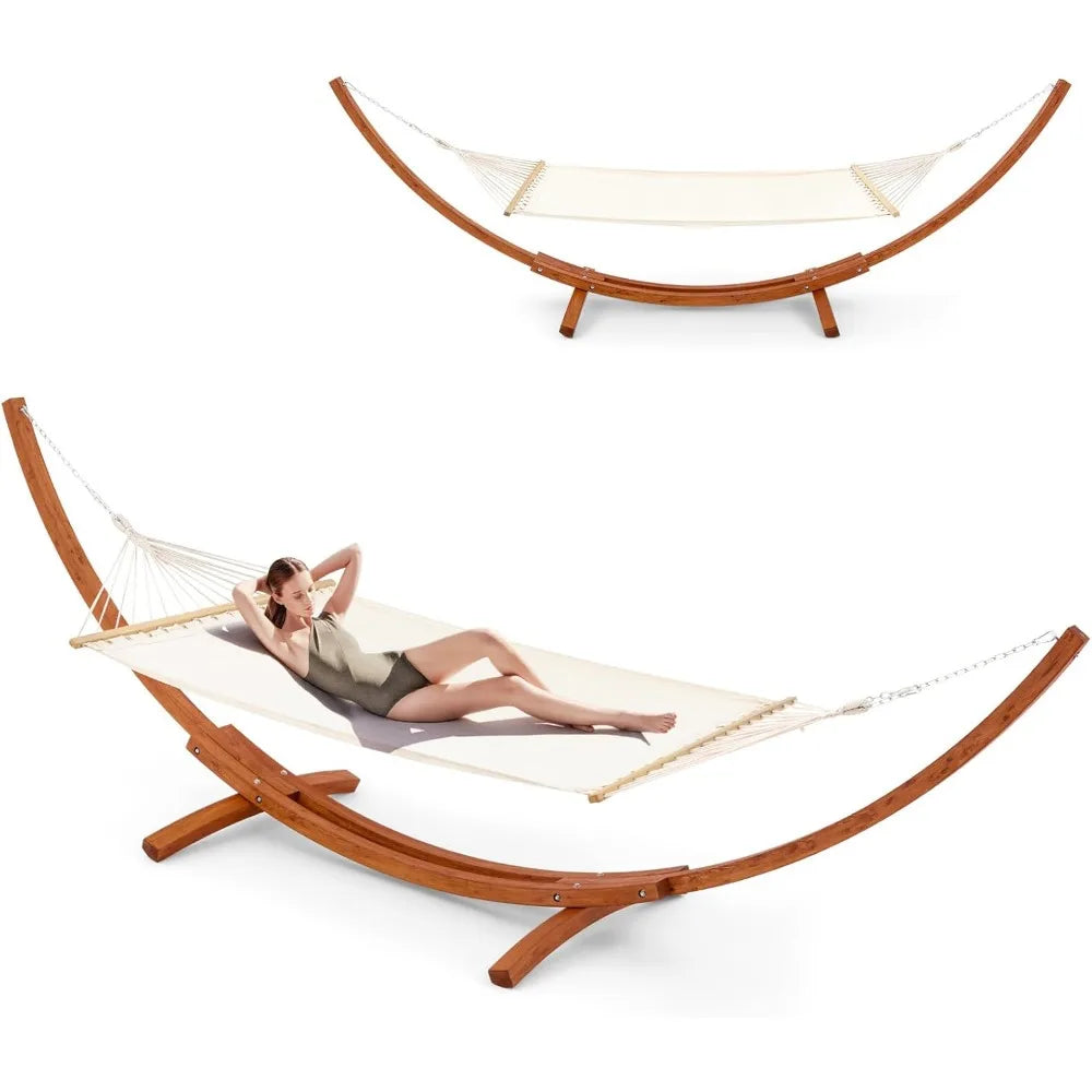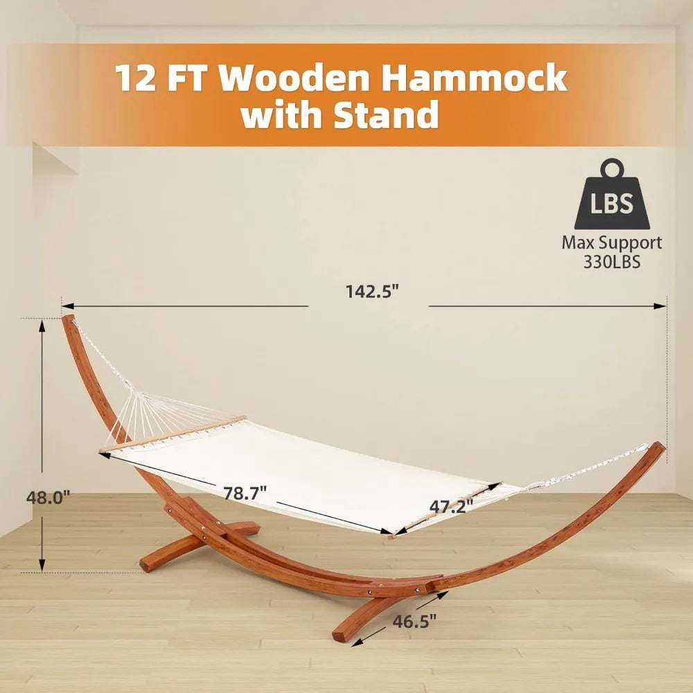 12 FT Wooden Hammock with Stand for Single Person, Weather-Resistant, Certified Sustainable Hammock Bed for Backyard, Balcony,