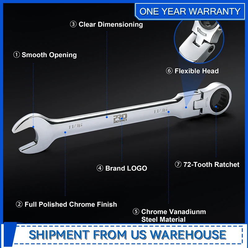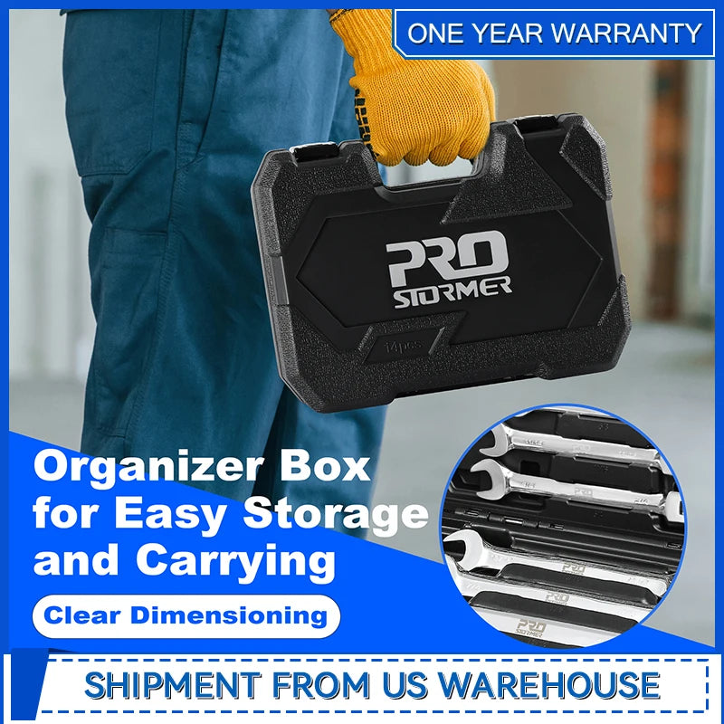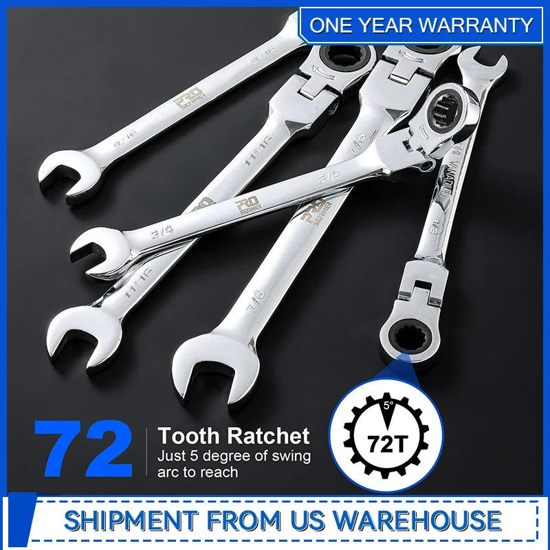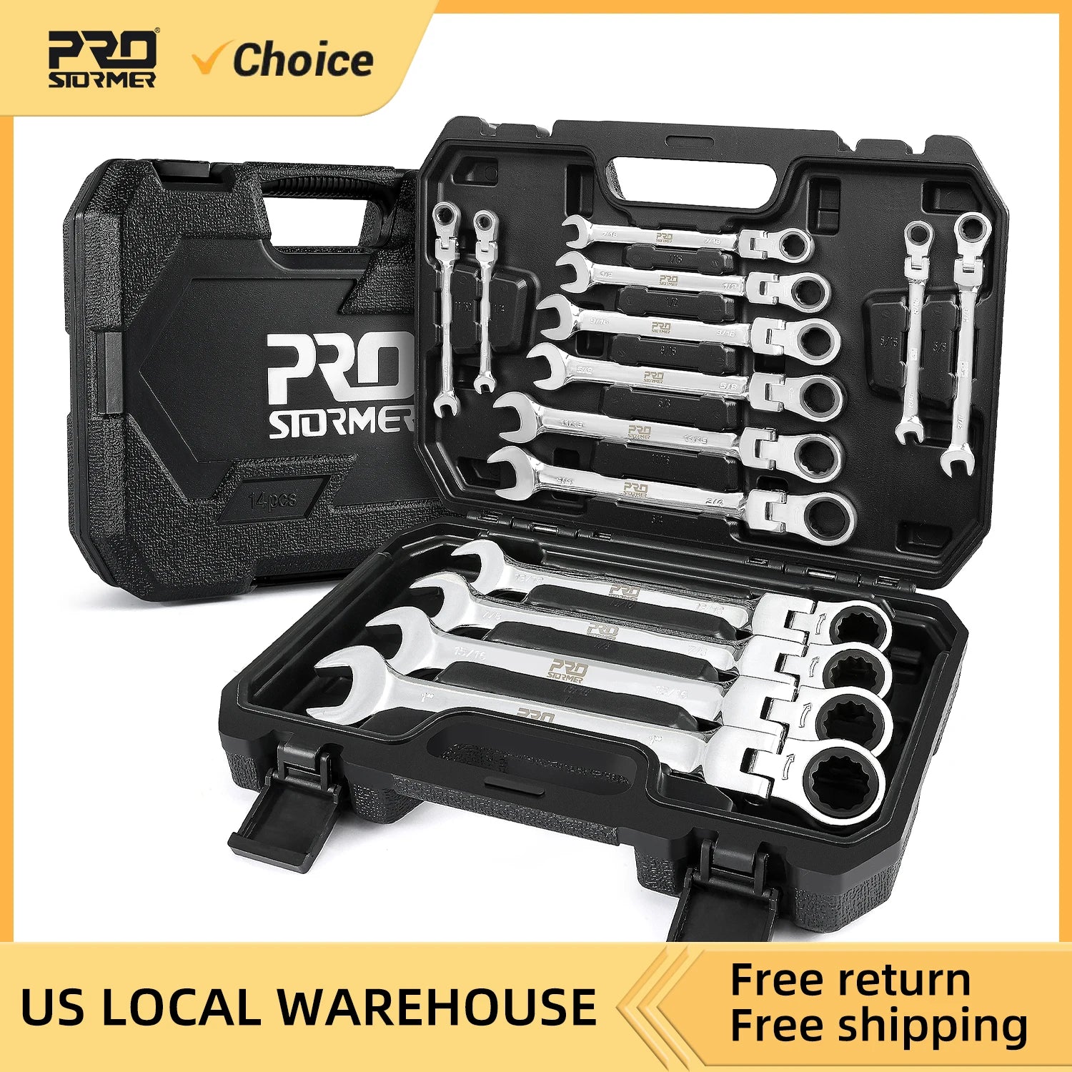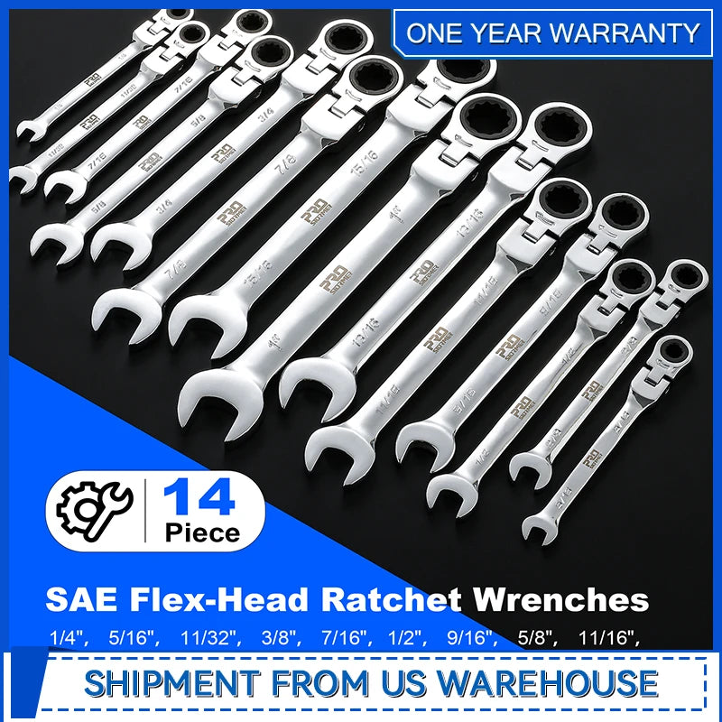 14-Piece SAE Flex-Head Ratcheting Wrench Set 1/4 to 1 with Storage Case 72 Tooth Cr-V Steel Constructed By Prostormer