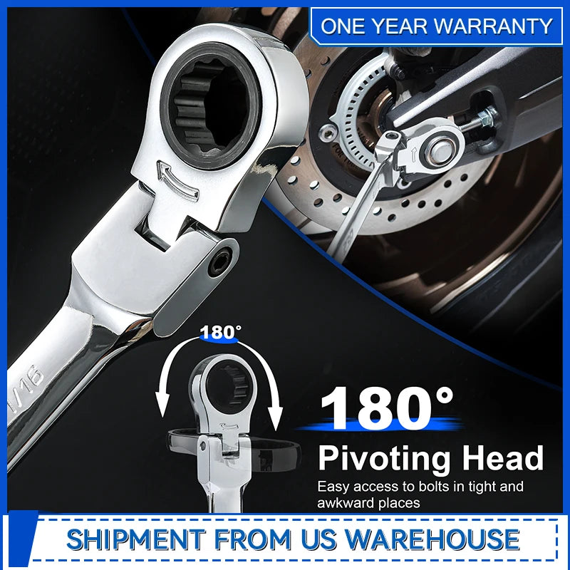 [Practical Design] - The 180 degree Flex-Head can reach to awkward places where most ratchet wrenches would not reach. The 72-tooth ratchet gears need only a 5-degree working swing arc, suitable for any narrow space.
