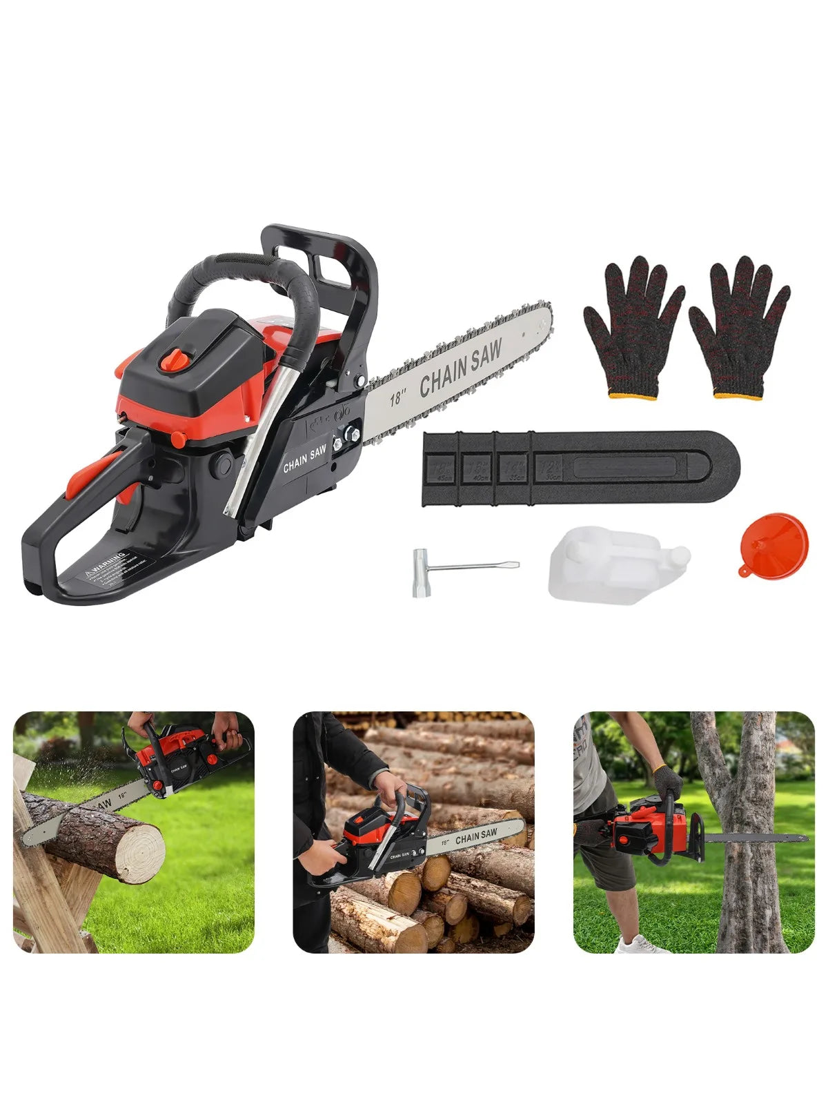 18 inch Chainsaw Gas Powered 2-Stroke 58CC 4.4HP Handheld Cordless Gasoline Chain Saws for Trees Wood Forest Cutting