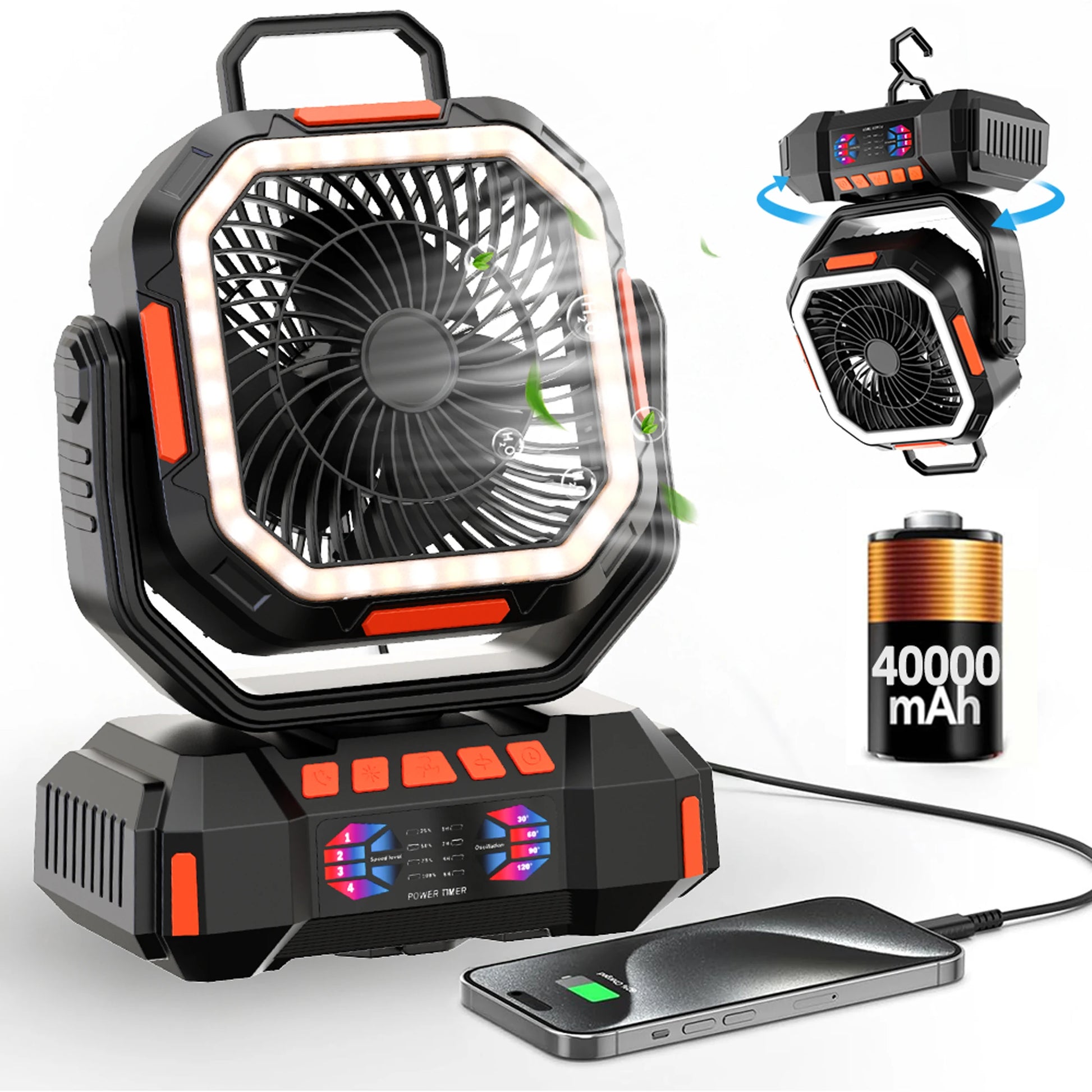 2025 Portable Wireless Fan 40000mAh Camping Fan Rechargeable Table Fan Travel Tent Fan Air Circulator Tents Outdoor Electric Fan