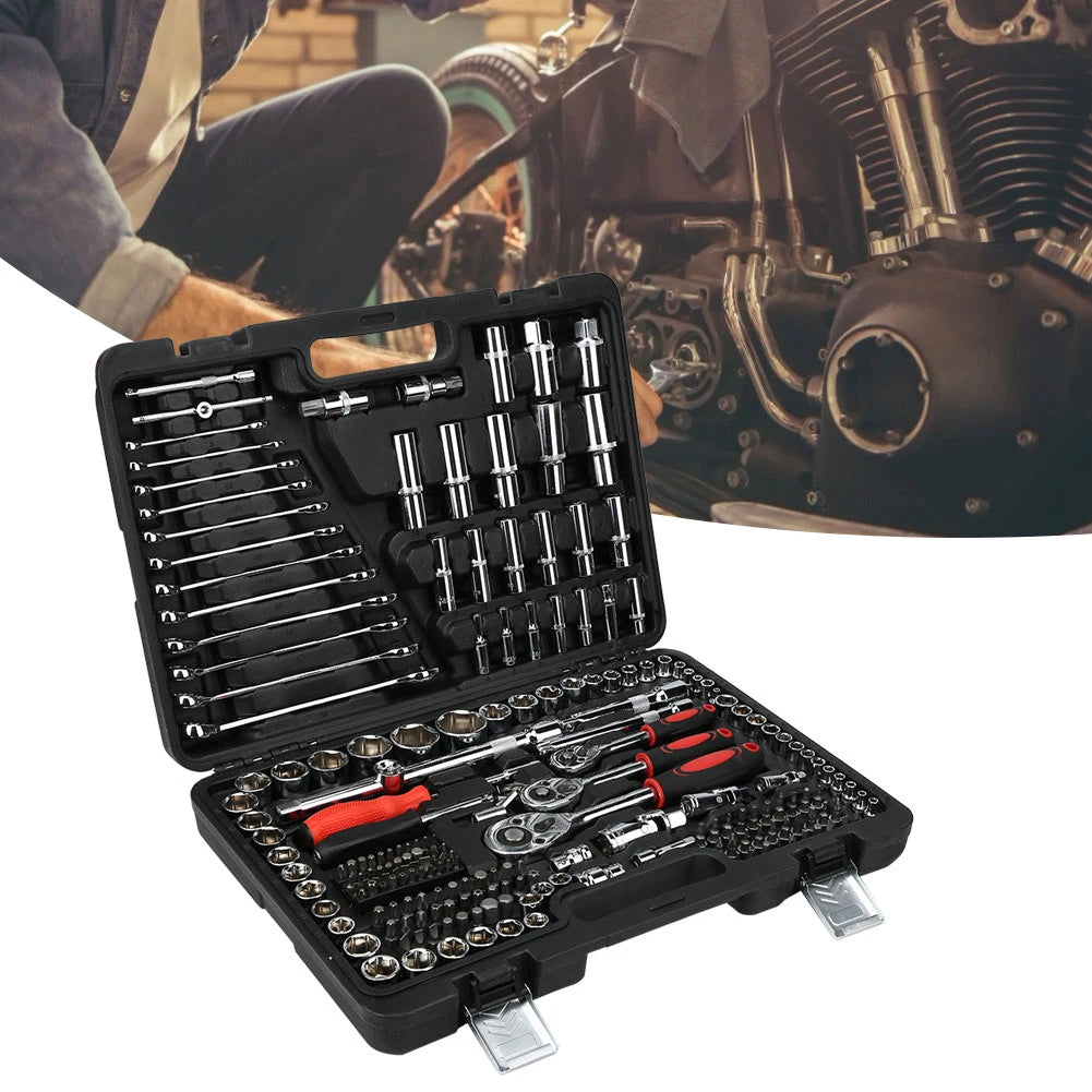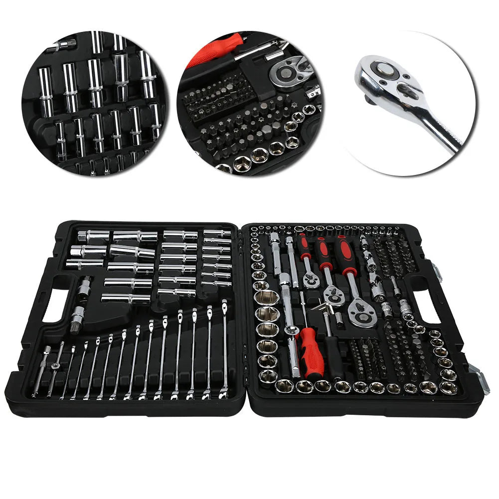 215Pcs Car DIY Repair Tool Kit 1/4in 3/8in 1/2in Socket Sets Ratchet Torque Wrench Combo Auto Repairing Sets Mechanic Tool