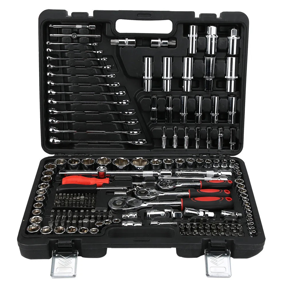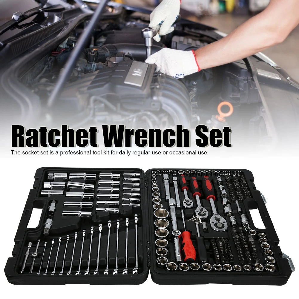 215Pcs Ratchet Wrench Set 1/4in 3/8in 1/2in Socket Set Tool Case Hand Tool Kits Box LPD00057