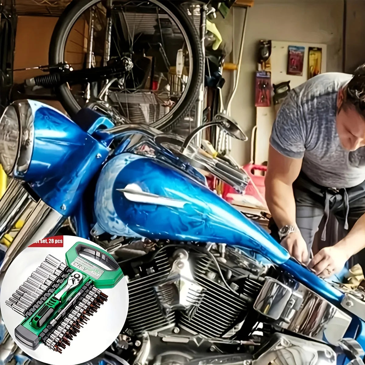 24Tooth Drive Socket Set1/4"-3/8"-1/2"Ratchet Socket Wrench Set Compact Sockets Set for Car Repair Mechanic Tool for Auto Repair