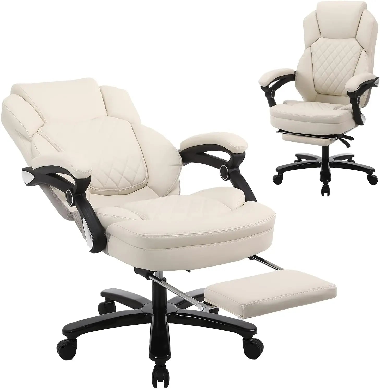 HUANZHUANG Recliner Office Chair With PU Leather Footrest