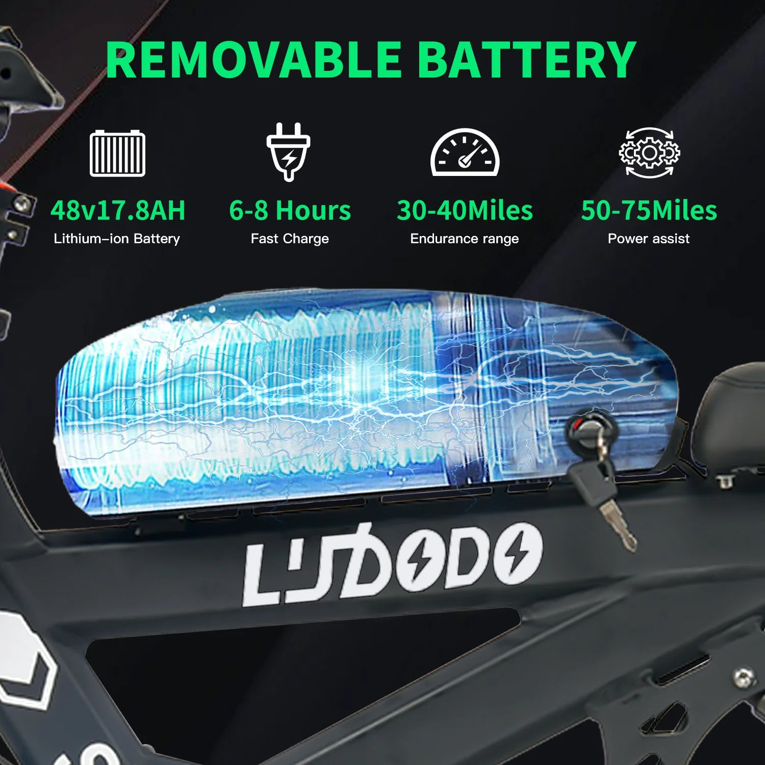 - Ride farther on a single charge—over 60 km range from a high-capacity 48V lithium battery, letting you extend weekend rides without worry.