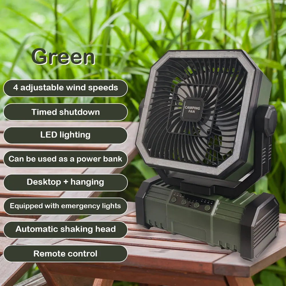 【Power Bank Function】Crafted with durability in mind. Our rechargeable fan is designed to provide you with long-lasting performance, thanks to its high-capacity 20000 mAh battery. this fan doubles as a mobile power supply, you can charge a variety of devices on the go.