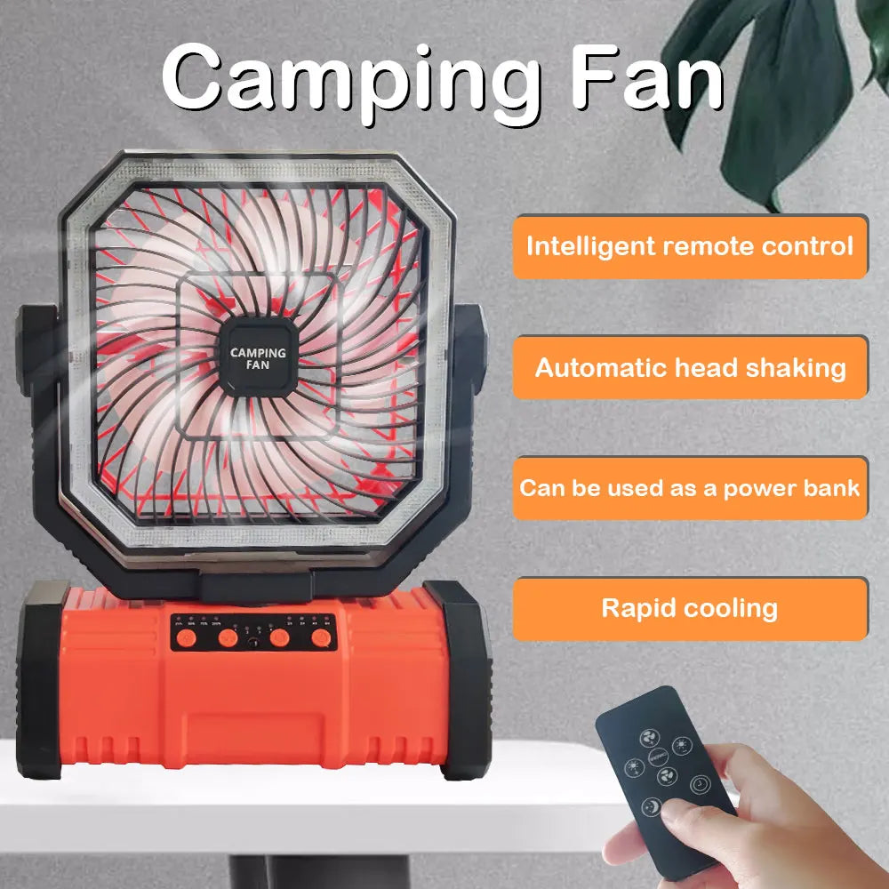 Camping Ceiling Fan 20000Mah Rechargeable Camping Circulator with Light and Remote Control Cool Air Circulation Camping Fan