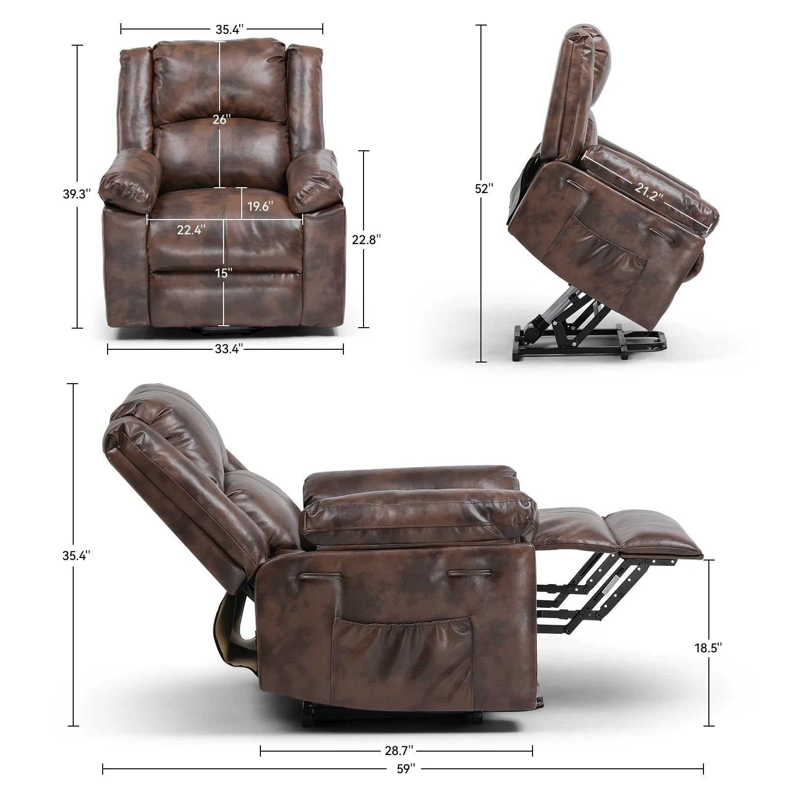 Adjustable angle - whether you want sit upright, recline back, or lay flat, our lift recliner has got you covered.The adjustable backrest allows users to customize the angle to their preferred position.It also provides exceptional support to the spine, reducing pressure on the lower back and promoting good posture<br>