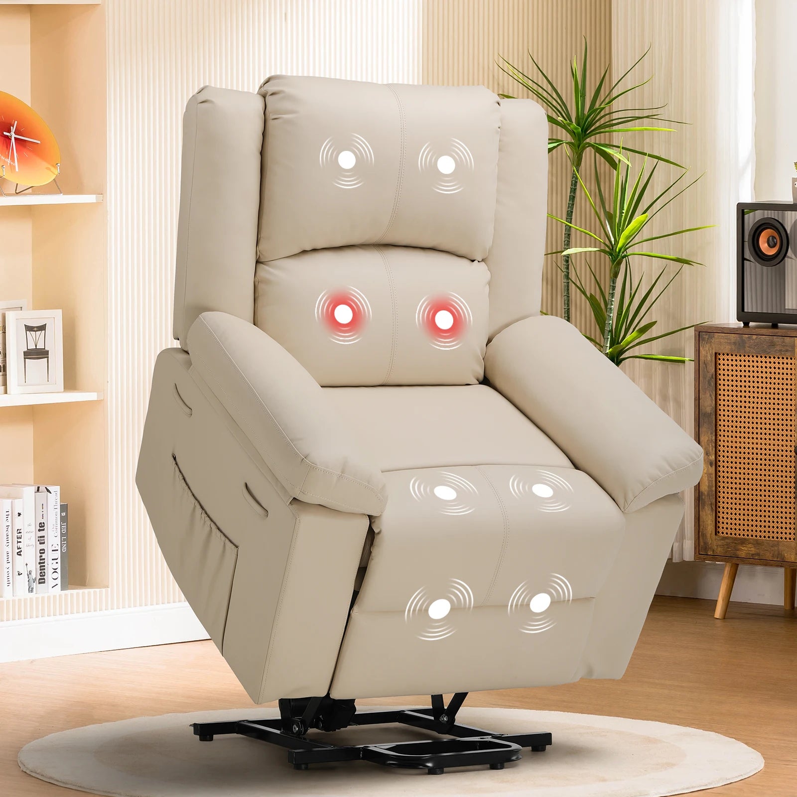 Massage & heating - combined with its exceptional lift mechanism, this massage chair not only enhances mobility, but also elevates the overall well-being of seniors.It comes with lumbar heating function in addition to its massage function, targets 4 different massage parts with 5 massage modes, you can also control its timing and its intensity<br>