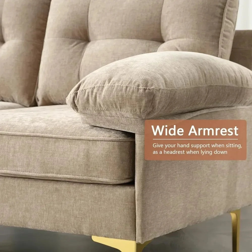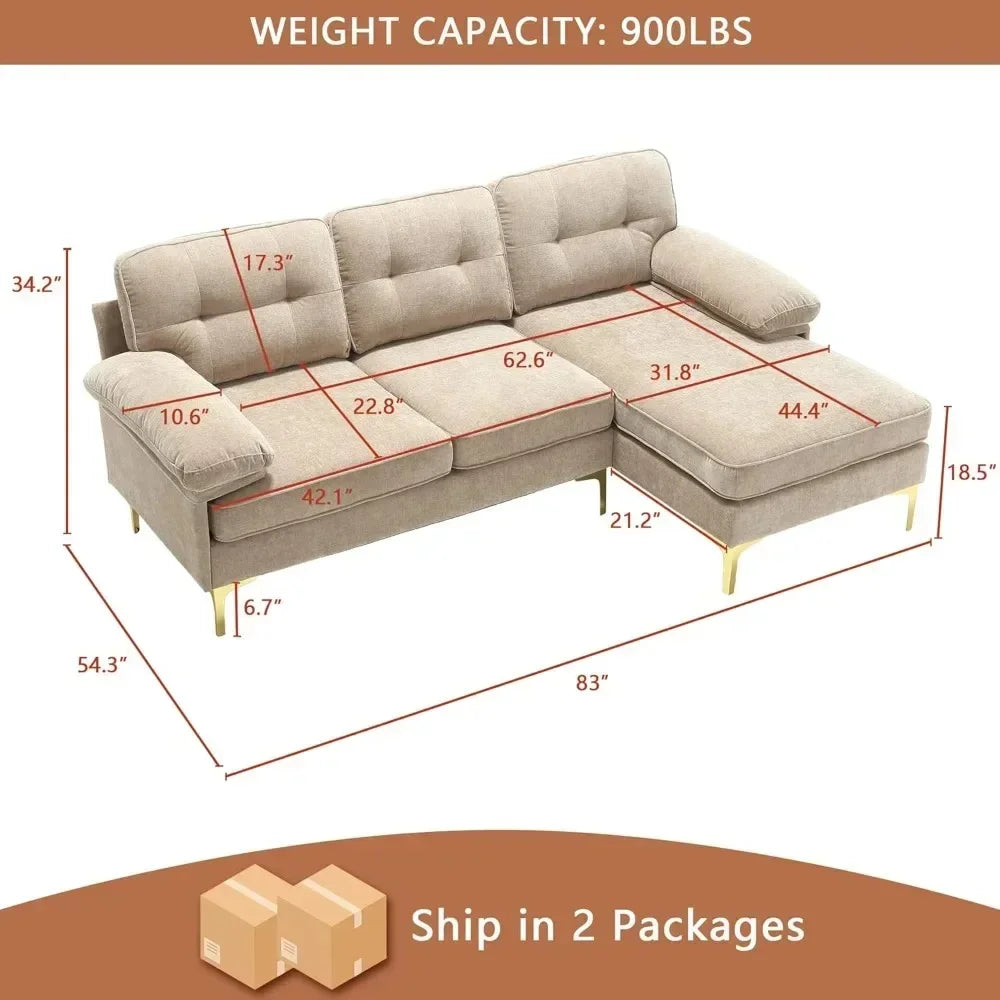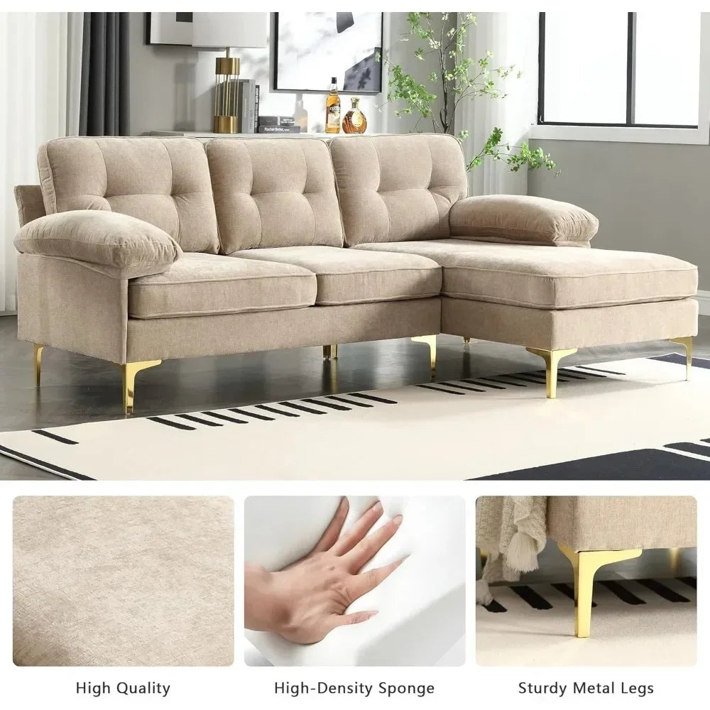 Elevate your living space with this modern L-shaped sectional sofa, blending retro charm and mid-century modern design. With its warm camel color and minimalist style, it adds a sophisticated touch to any room, whether it's a living room, apartment, or office.