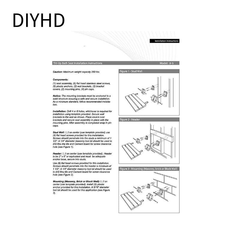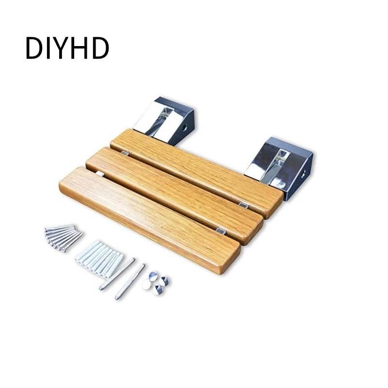 DIYHD SD 15" TEAK WOOD Floding Seat Wall Mount Shower Bench