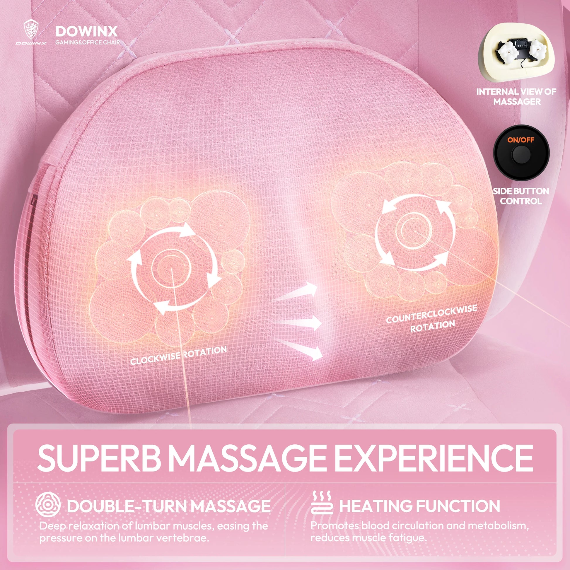 Upgrade your gaming and work sessions with Dowinx's heated massage gaming chair featuring lumbar support for all-day comfort.