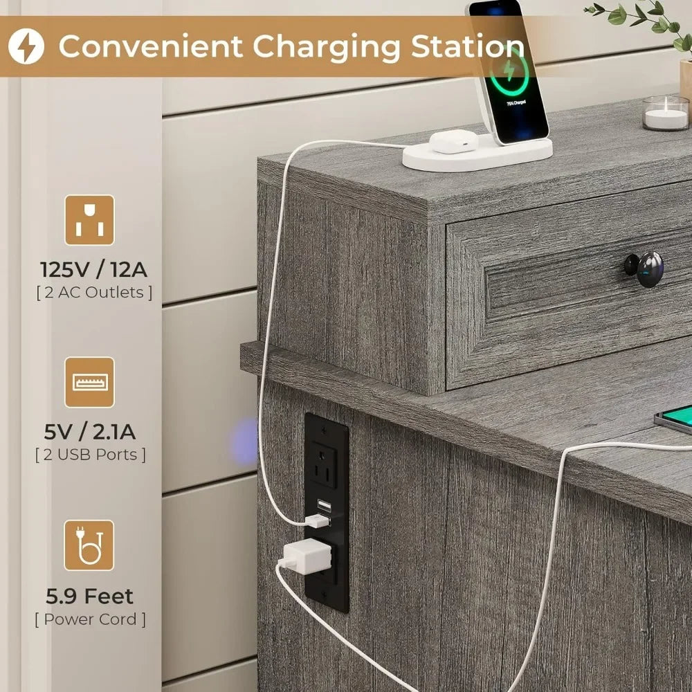- Power and charging You get a built-in power strip on the left side with 2 outlets and 2 USB ports to keep your computer, phone, and accessories powered and clutter-free.