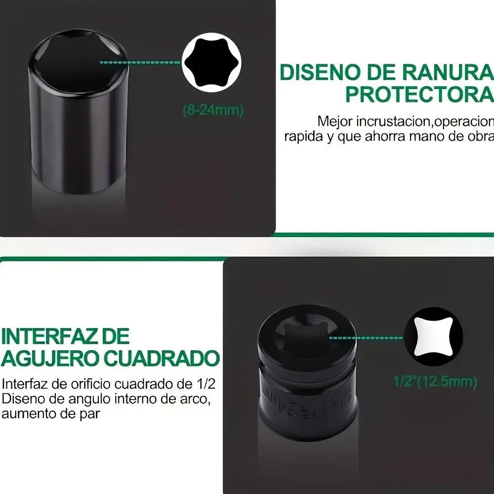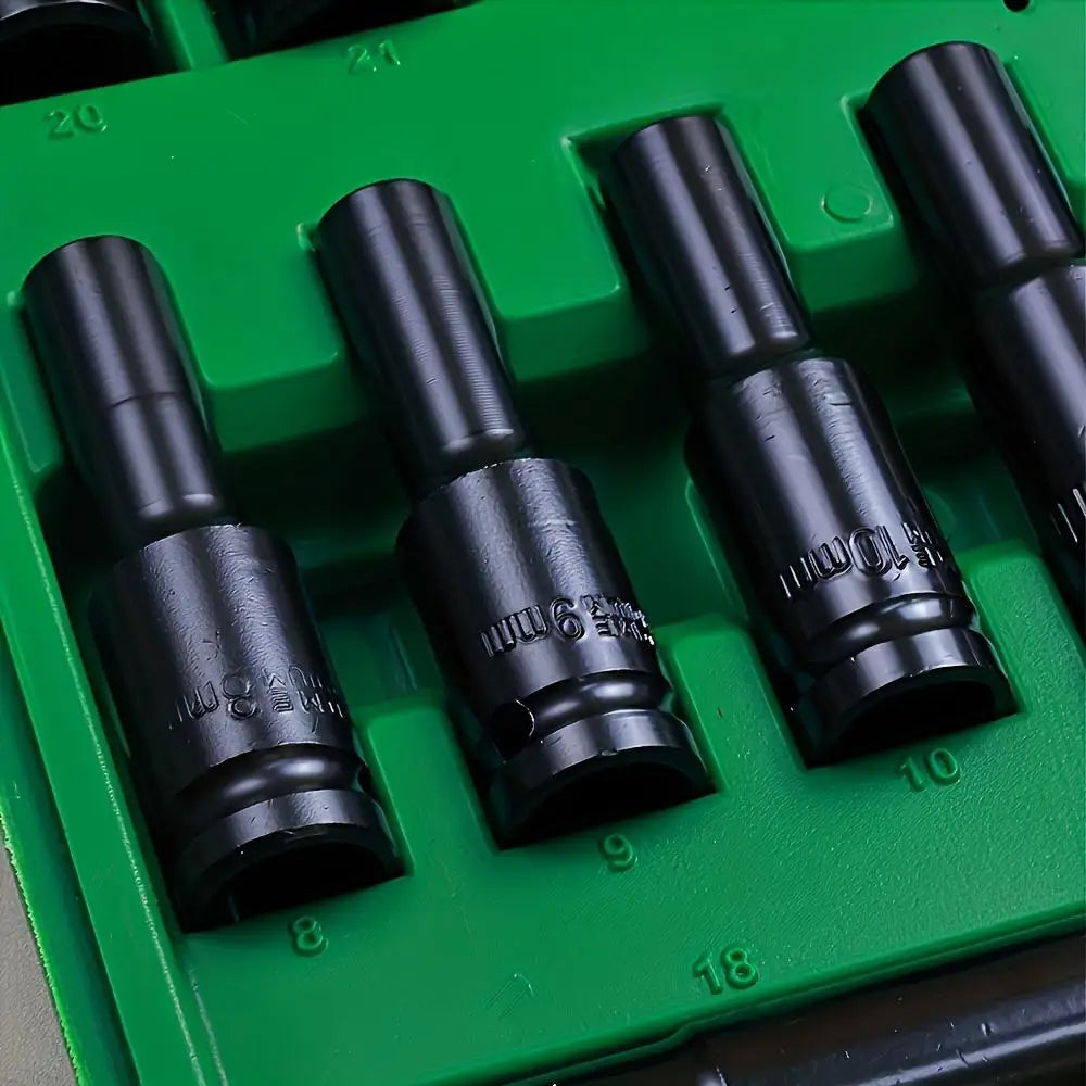 Heavy Duty 1/2 inch Drive Hex Sleeve Set - 20-Piece, 8-32mm Black Finish