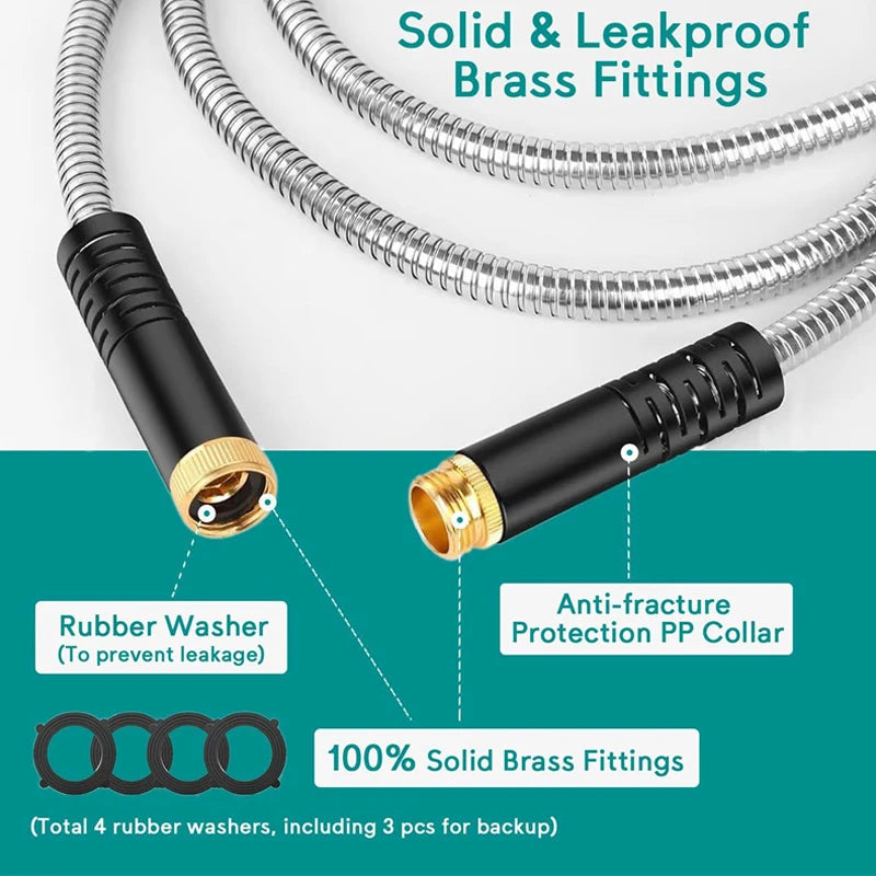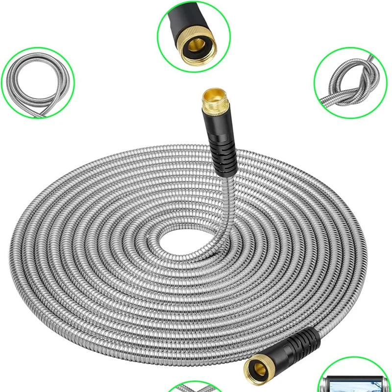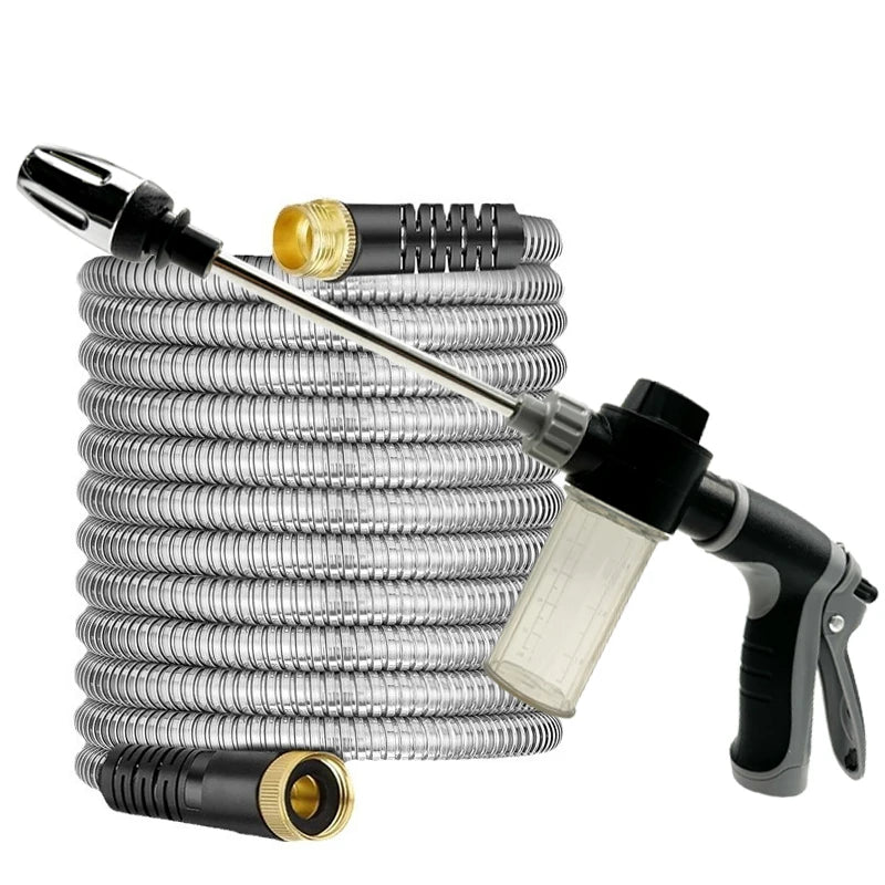 High Pressure Garden Hose 25 Feet - Stainless Steel Garden Hose Metal Flexible Car Washing Hose, With Yard Spray, Never Knotted