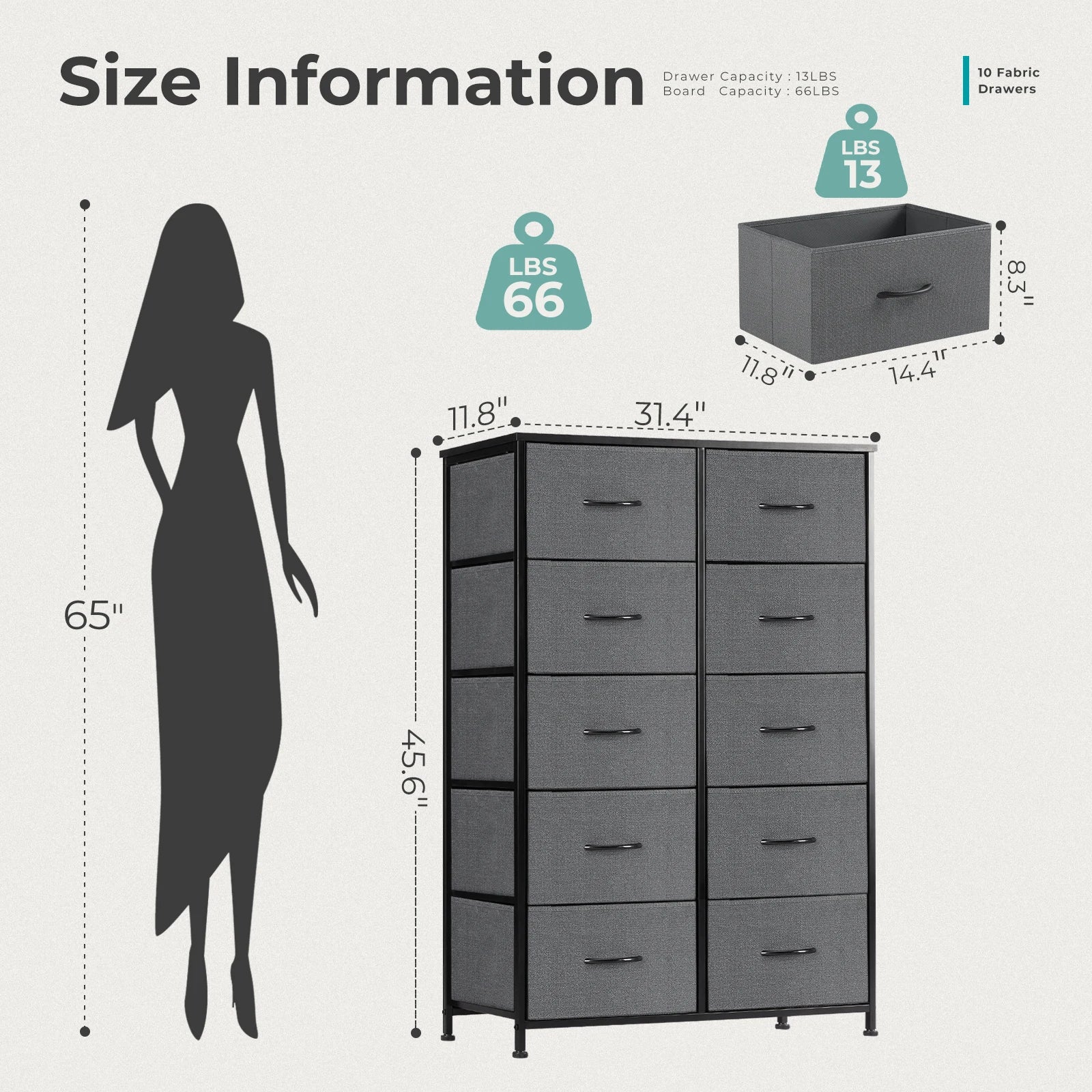 - Ten fabric drawers give you spacious storage for clothes, accessories, socks, and everyday essentials beside your bed, helping you stay organized.