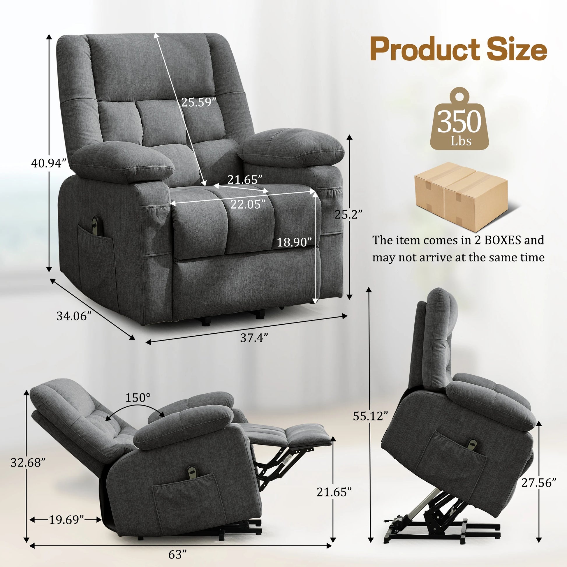 - Find your ideal angle anytime with power remote reclining from 45° to 150°, perfect for reading, lounging, or watching TV.
