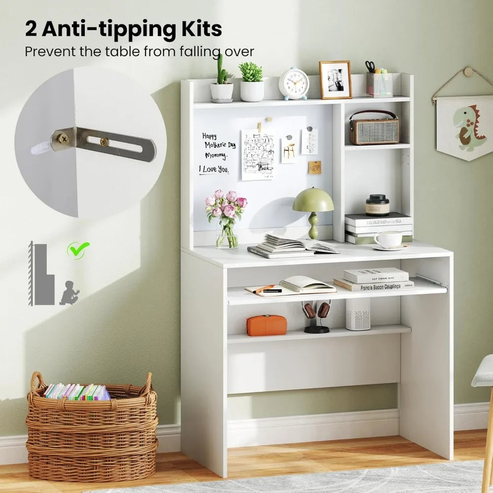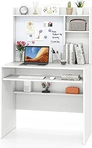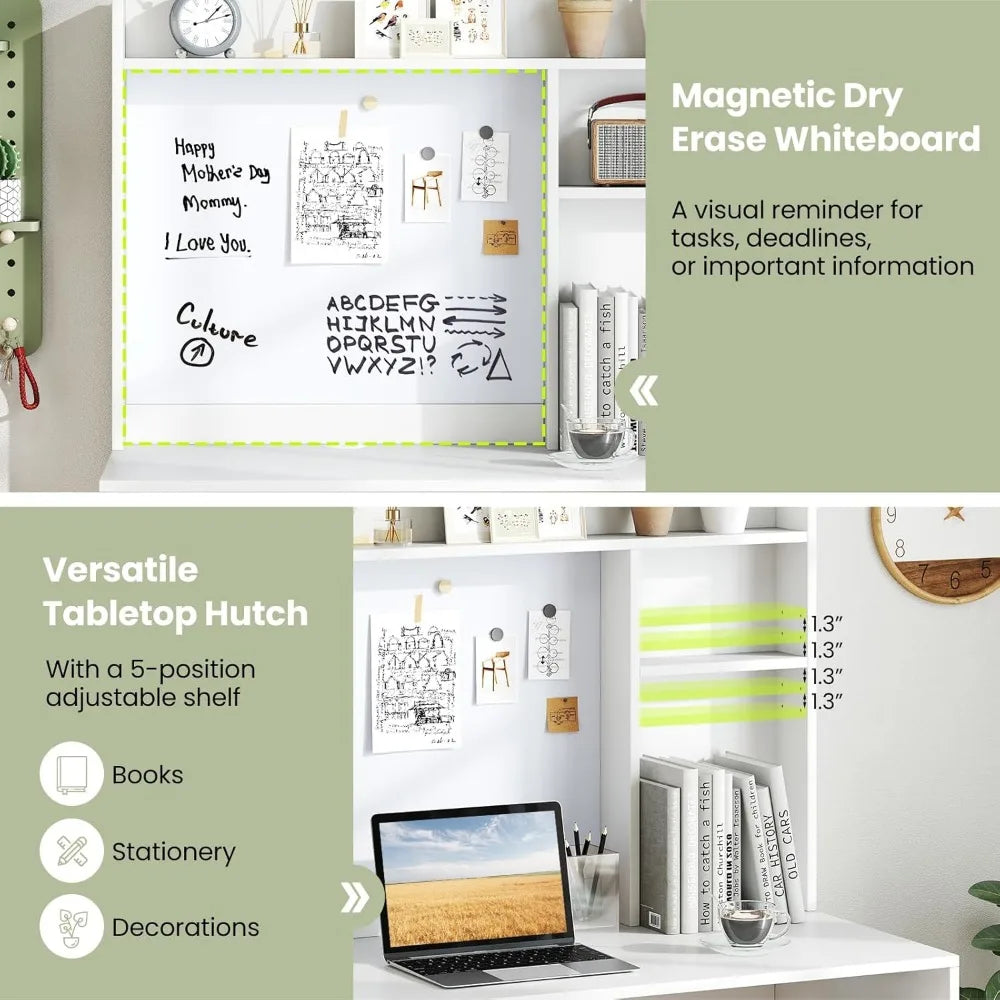 Experience focused productivity with LZJV's modern computer desk, featuring a built-in magnetic whiteboard, a vertical hutch, and a spacious bookshelf to organize ideas and gear.