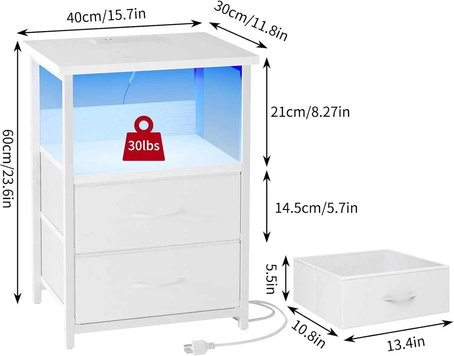 From Drawer, this LED nightstand set upgrades your bedroom with color, charging, and organized bedside storage.
