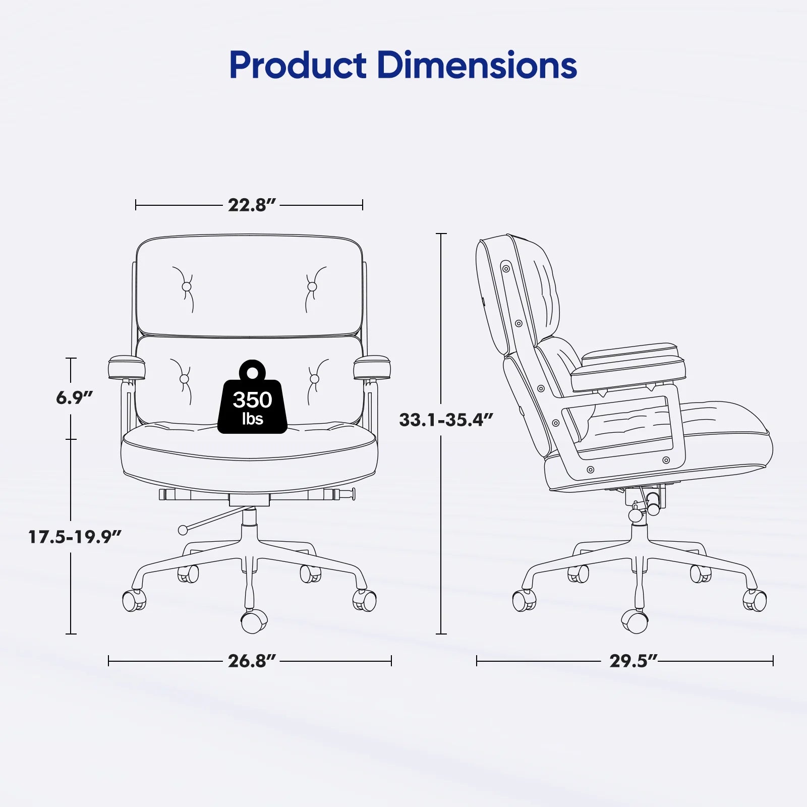 - All-day comfort — seat and back are covered in high-quality real leather with supportive padding that helps you maintain good posture and reduce fatigue.