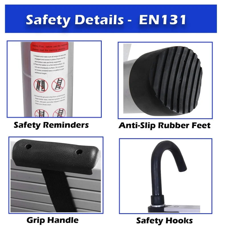 QIMU Aluminum Extension Folding Loft Ladder With Detachable Hooks