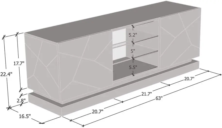 - Dimensions 63": 22.4 inches height x 63 inches width x 16.5 inches depth. Dimensions 79": 22.4 inches h