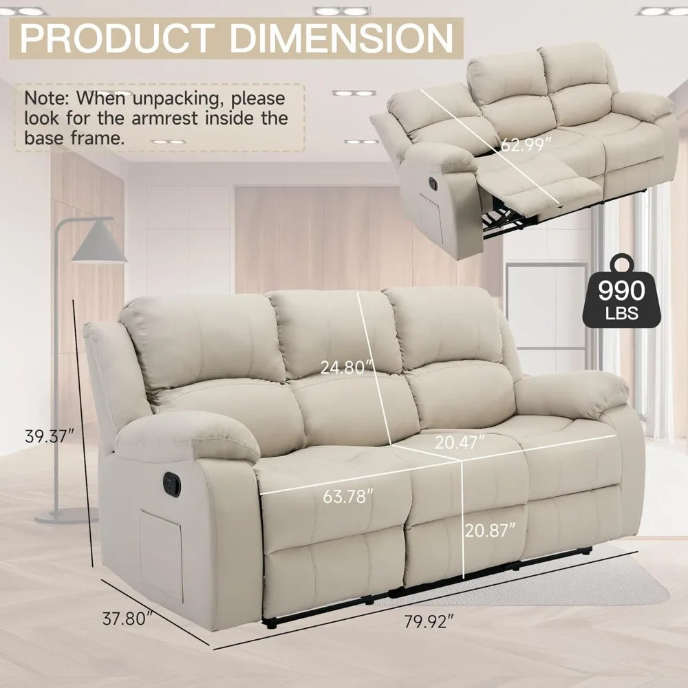 Reclining Loveseat Sofa Leather Recliner Sofa 3 Seater Couch for Living Room, Home Theater Seating