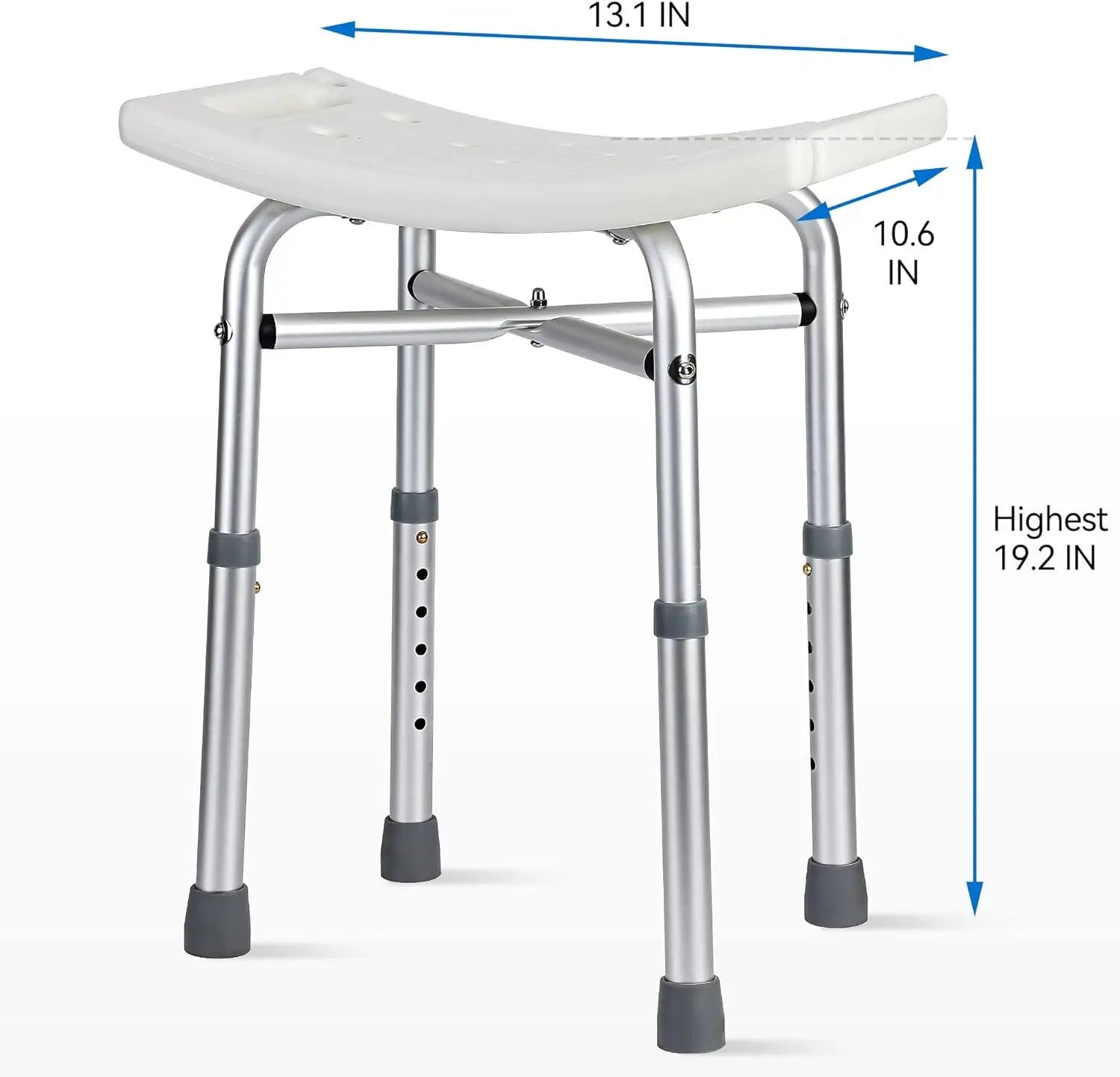 Adjusted Height: This shower chair can be adjusted from 14.2 inches to 19.2 inches with 6 Levels legs, fit for injured/handicapped/senior/disabled/pregnant. You can easily adjust the height of the shower chair to create a secure, customized experience