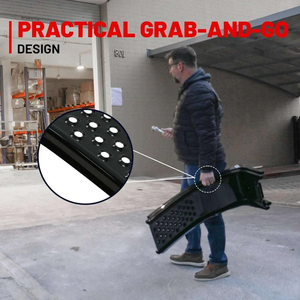 - High weight capacity—each ramp supports up to 2000 lbs (4000 lbs per pair), so you can confidently lift your car, SUV, or pickup.