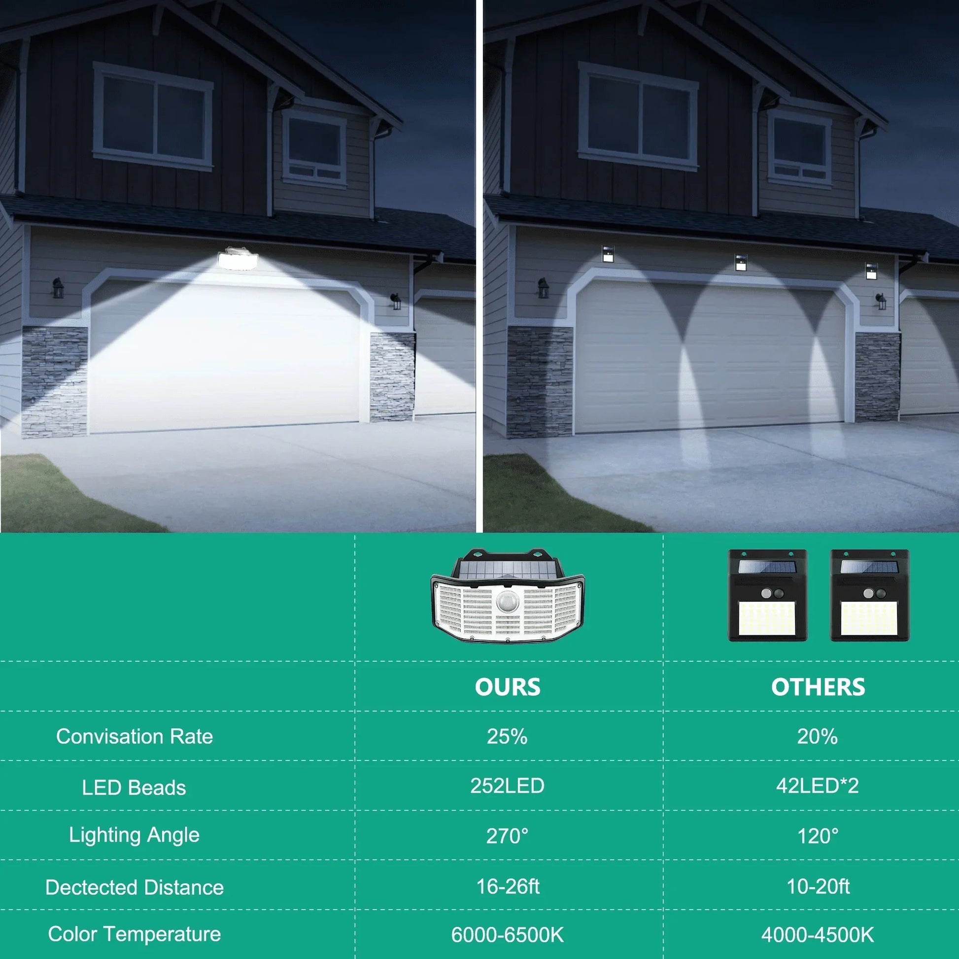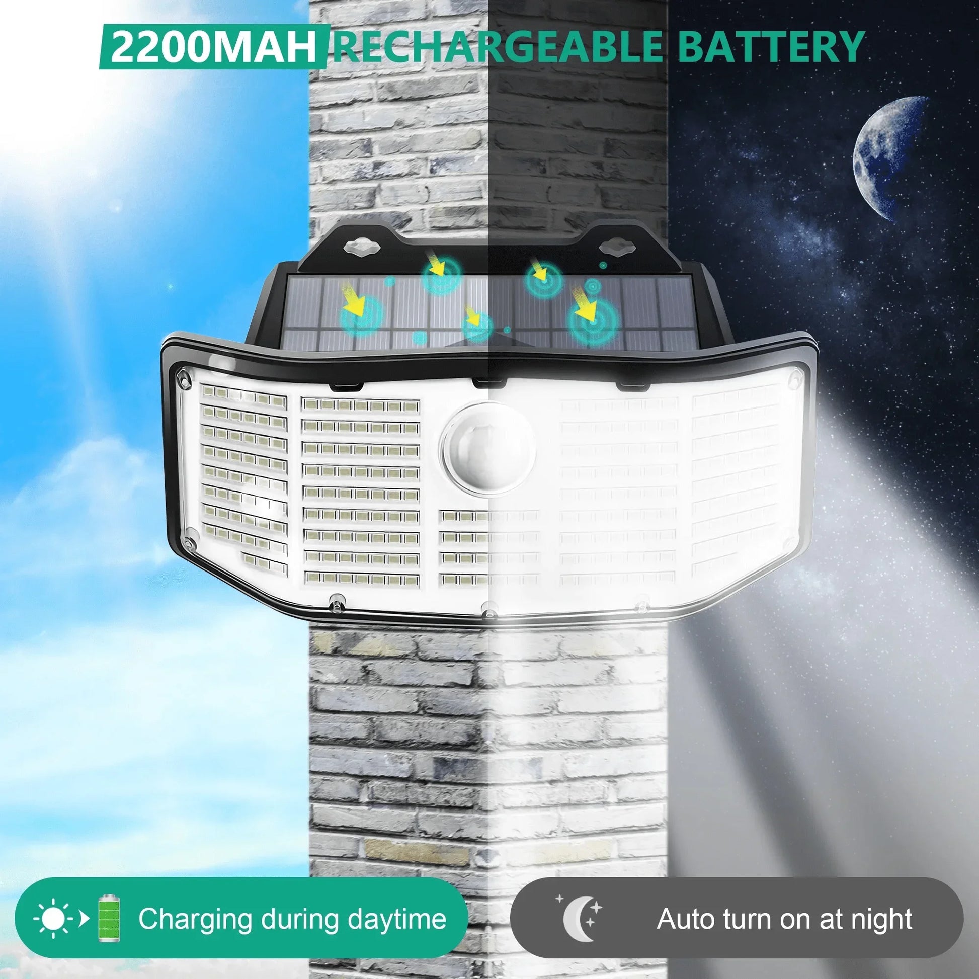 Designed with a 270° lighting range, these solar lights surpass the standard 120° range, providing extensive coverage for your nighttime activities. Whether you're entertaining guests or simply enjoying a quiet evening outdoors, these lights offer both convenience and security.