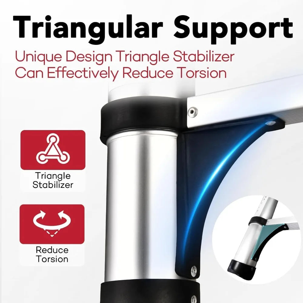 - Extends and stabilizes: adjustable from 2.8 to 16.5 feet with upgraded triangle stabilizers to minimize shaking on uneven surfaces.