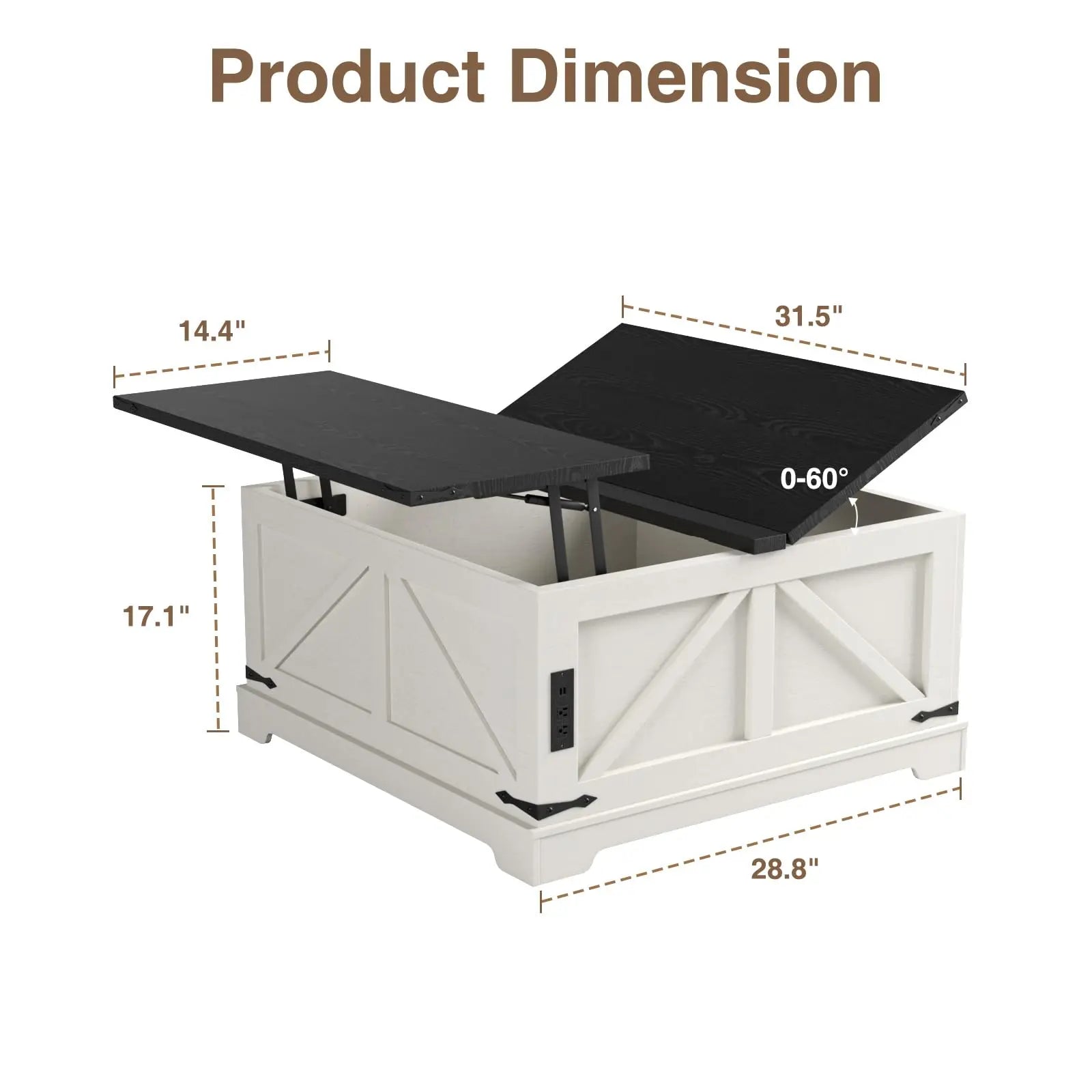 Wood Square Lift Top Coffee Table with Storage&Power Outlet